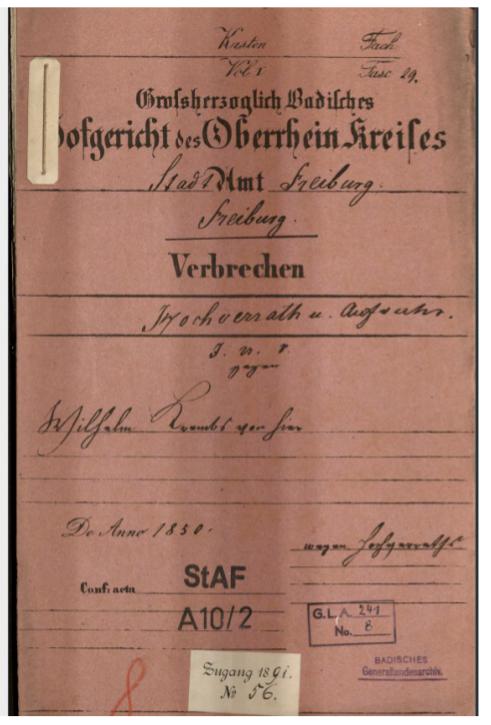 dem Zuchthaus Bruchsal entlassen. Seine Prozessakte liegt im